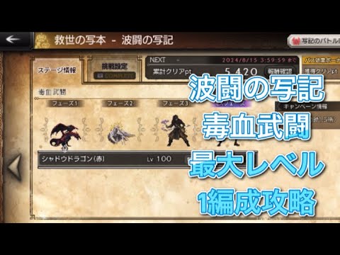 波闘の写記の毒血武闘を最大レベル1編成攻略しました。
