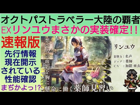 オクトラ覇者 速報版 先行情報先出し まさかのEX化!リンユウ実装確定 現在開示されている性能チェック!!【全キャラ無凸縛りプレイ オクトパストラベラー大陸の覇者】